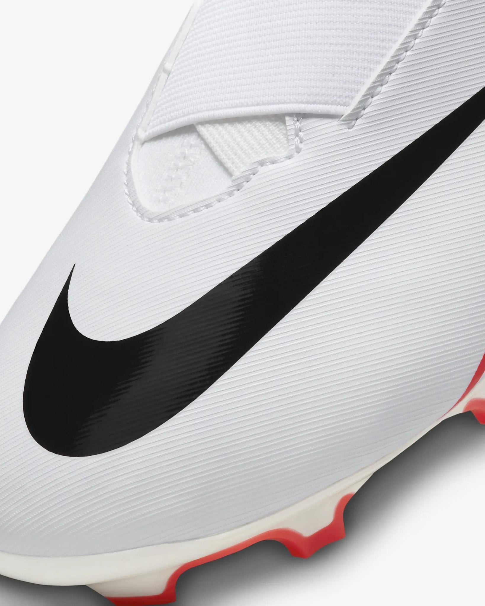 SURCLASSA GLI AVVERSARI. Hai le capacità e hai il talento. Ora fai vedere chi sei con questa scarpa da calcio Nike Jr. Le linguette e le doppie fascette creano un modello facile da indossare che elimina la necessità dei lacci e ti consente di scendere in campo velocemente. Ma c'è di più. L'ammortizzazione Zoom Air sotto il tallone offre un comfort elastico per tutta la partita. Comfort ammortizzato Elastica e reattiva, l'ammortizzazione Zoom Air assicura una sensazione di velocità che ti farà decollare. Massima presa, massimo stacco Progettati per superfici naturali e sintetiche, i tacchetti conici offrono una trazione superiore con sgancio rapido e rotazione. Dettagli prodotto Ideale su superfici naturali e sintetiche Suola interna ammortizzata Dettagli prodotto Ideale su superfici naturali e sintetiche Suola interna ammortizzata