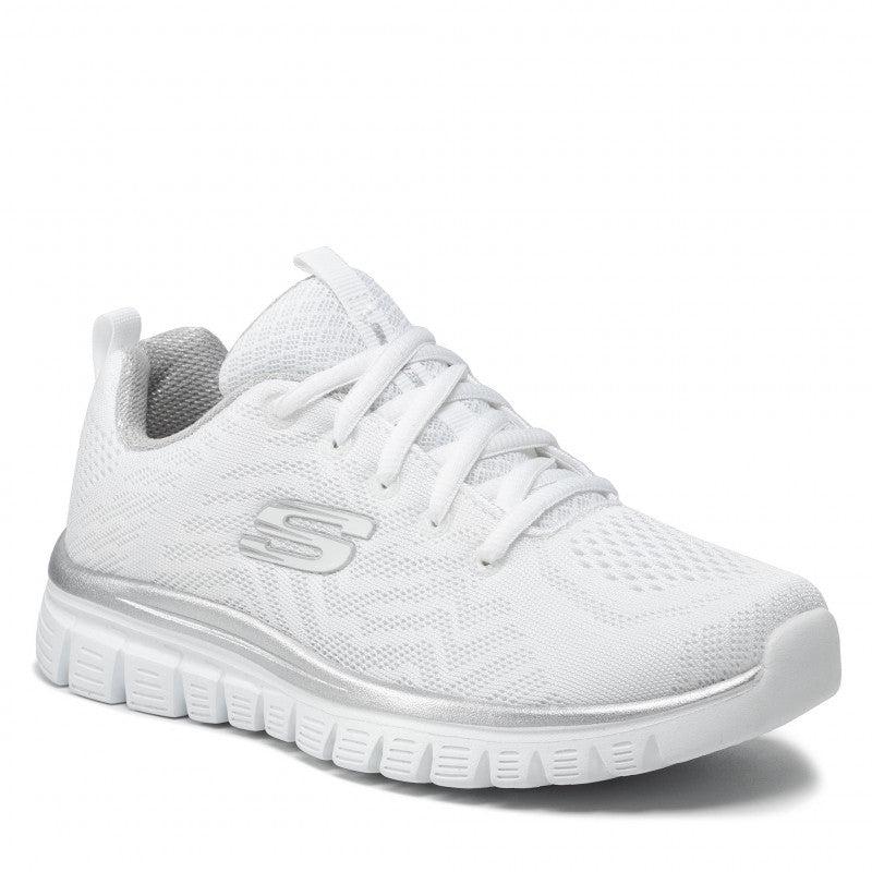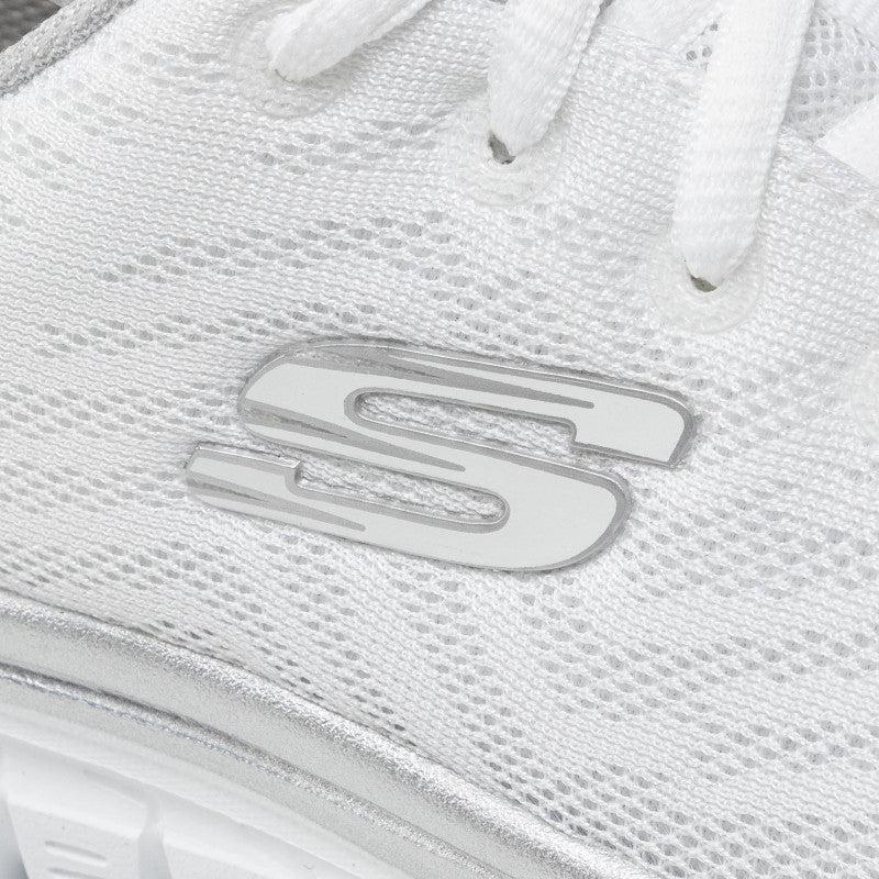 Tomaia sportiva monopezzo in tessuto Skech Knit in una sneaker sportiva stringata con cuciture e dettagli sovrapposti.