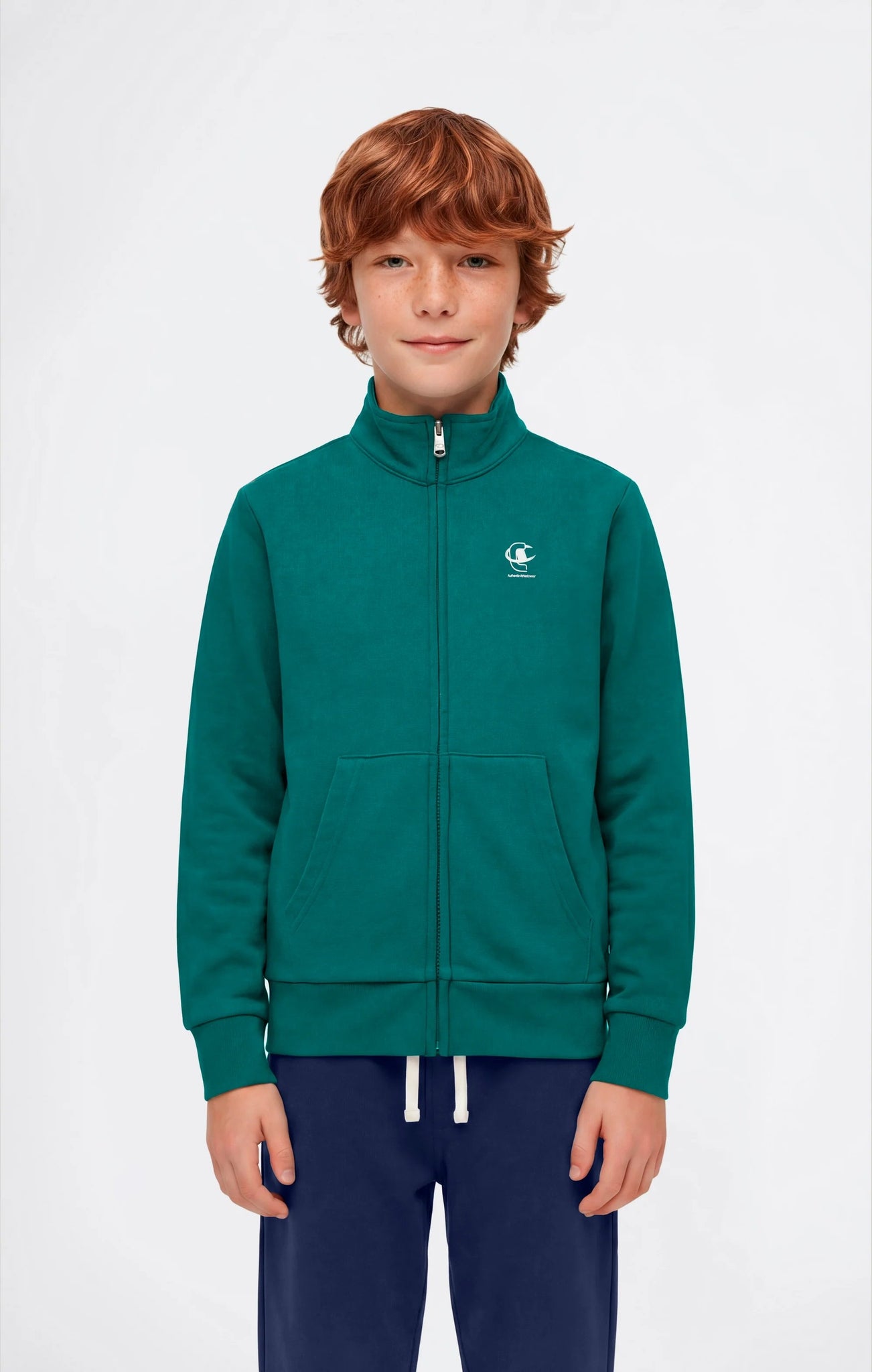 Tuta da bambino dallo stile sportswear iconico, composta da felpa con zip intera e pantaloni coordinati.