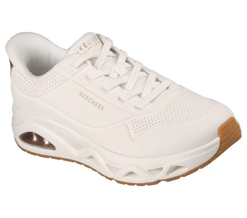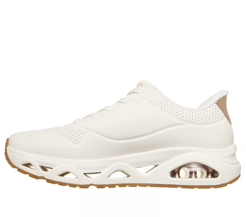 intersuola ammortizzata geometrica Glide-Step®, soletta Skechers Air-Cooled Memory Foam® e intersuola con airbag Skech-Air® visibile.
