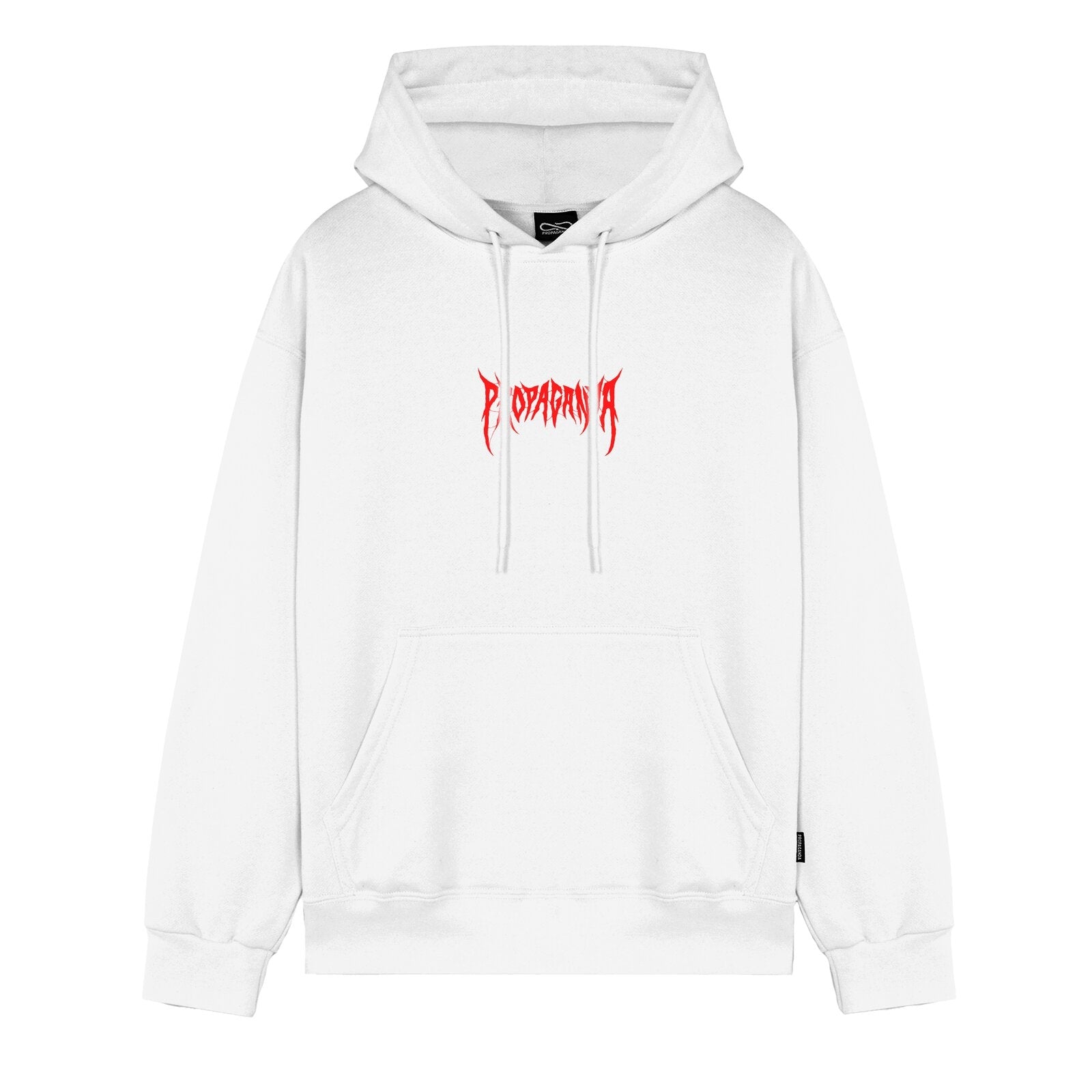 Felpa con cappuccio in Felpa. Stampa serigrafica su fronte e retro. Tasca a marsupio. Coulisse al collo. Costina ai polsi e in vita. Label personalizzata al fianco sinistro. 100% Cotone Made in Italy.