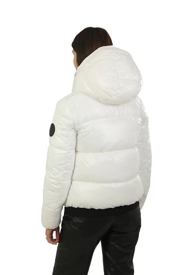 Piumino Save the Duck Off White Bomber realizzato in nylon riciclato. Con cappuccio. Chiusura con zip, e tasche con bottoni a pressione. Logo sulla manica. Composizione 100%ny