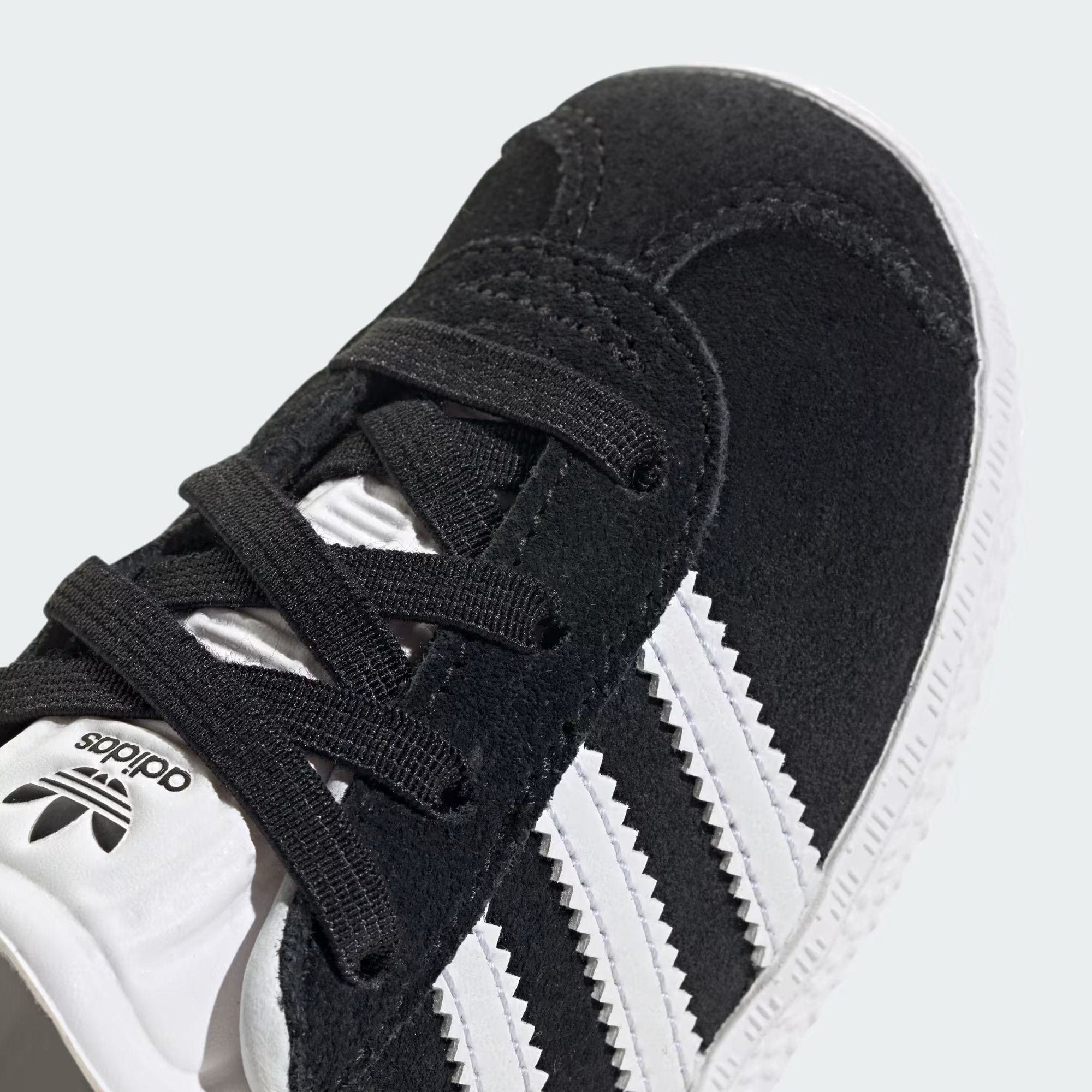 Scarpe infant che ripropongono un iconico look anni '90. Queste scarpe adidas Gazelle infant permettono ai più piccoli di sfoggiare l'iconico stile. Modellata sulla base dell'originale del '91, la tomaia in suede e le 3 Strisce richiamano l'atteggiamento disinvolto di quell'epoca. I lacci elasticizzati permettono di indossarle e toglierle con facilità, mentre la soletta imbottita sostiene delicatamente i piedini dei più piccoli. Un tempo progettate per le prestazioni, queste scarpe sono oggi un'icona senza tempo tramandata alle nuove generazioni.