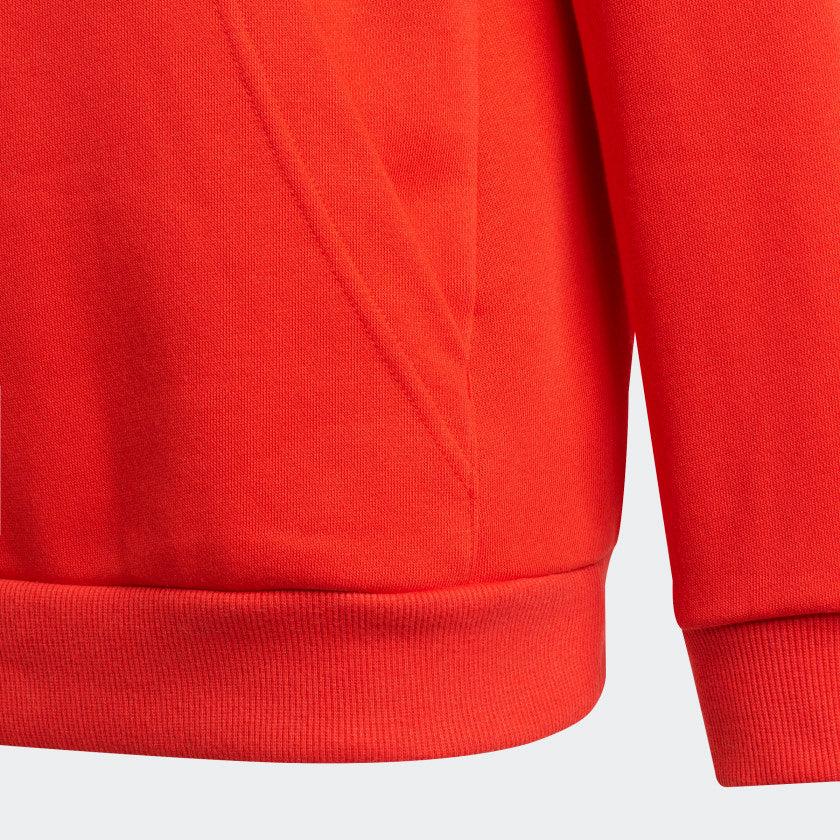 FELPA CON CAPPUCCIO LOGO UN MODELLO IN SPUGNA PER GIOVANI ATLETI. Riscaldati o rilassati con l'inconfondibile stile adidas. Indossa questa felpa con cappuccio junior e prepara la tua sessione di allenamento quotidiana oppure goditi il meritato relax, in entrambi i casi sarai in buone mani. Mostra la tua passione per lo sport attraverso il logo oversize. La struttura in morbida spugna garantisce un calore e un comfort ottimali. Il capo è realizzato con materiale riciclato come prova tangibile del nostro impegno nella lotta all'inquinamento causato dalla plastica. SPECIFICHE Taglio regolare Design con cappuccio Spugna, 70% cotone / 30% poliestere riciclato Tasca a marsupio Rivestimento in tessuto sulle spalle Polsini e orlo a coste Colore prodotto: Vivid Red / Black Codice prodotto: H07740