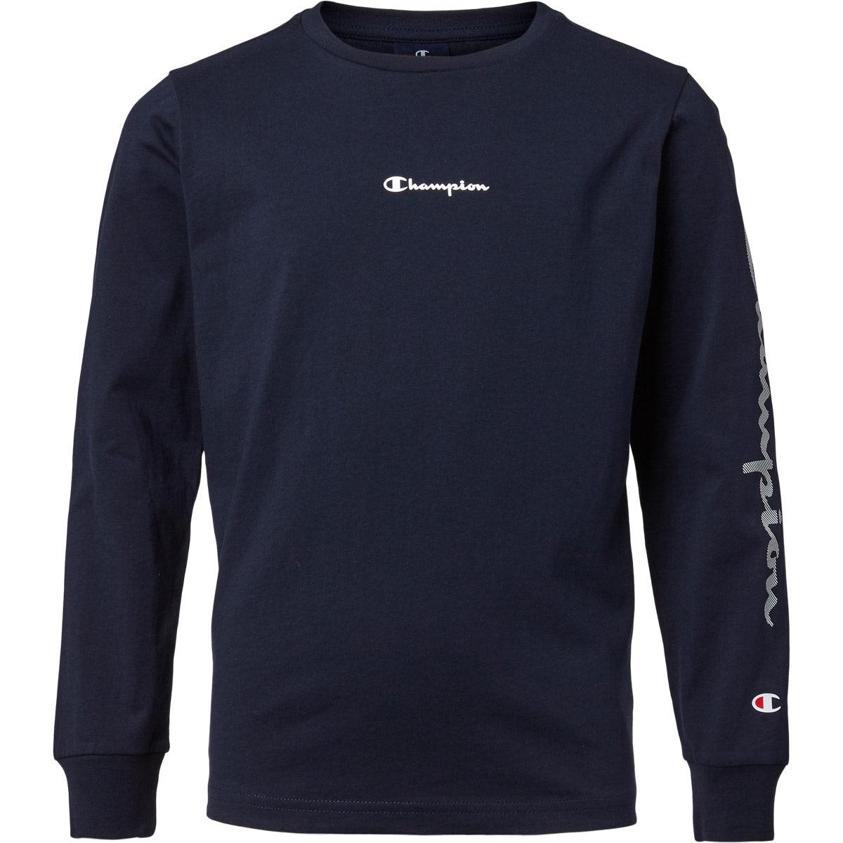Questa t-shirt Champion Crewneck a maniche lunghe per bambini è un modello classico con l'iconico logo sul petto e una manica.