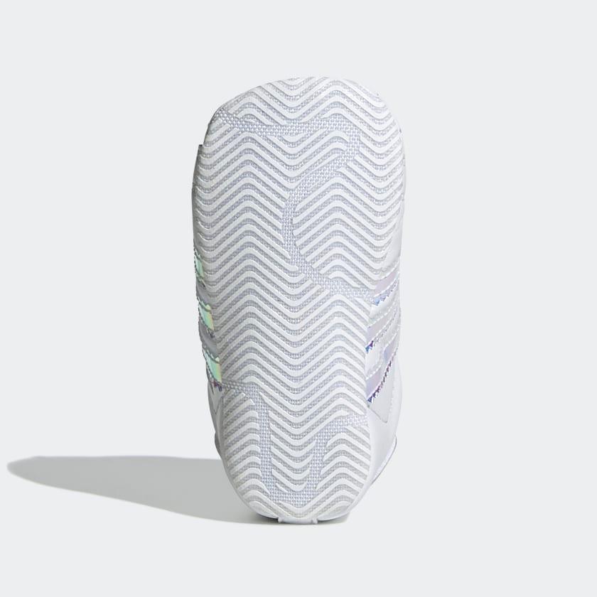 SCARPE SUPERSTAR SNEAKER CON DETTAGLI IRIDESCENTI DEDICATE AI PIÙ PICCOLI. Queste scarpe sono realizzate per i più piccoli e rappresentano una versione in miniatura delle trainer adidas Superstar, iconica punta a conchiglia compresa. La tomaia in pelle morbida e flessibile avvolge i piedini e i dettagli iridescenti riflettono la luce. Le chiusure a strappo garantiscono la massima praticità. SPECIFICHE Calzata regolare Chiusura a strappo Tomaia in pelle Suola in tessuto con stampa antiscivolo in gomma Design avvolgente Colore prodotto: Cloud White / Cloud White / Core Black Codice prodotto: BD8000