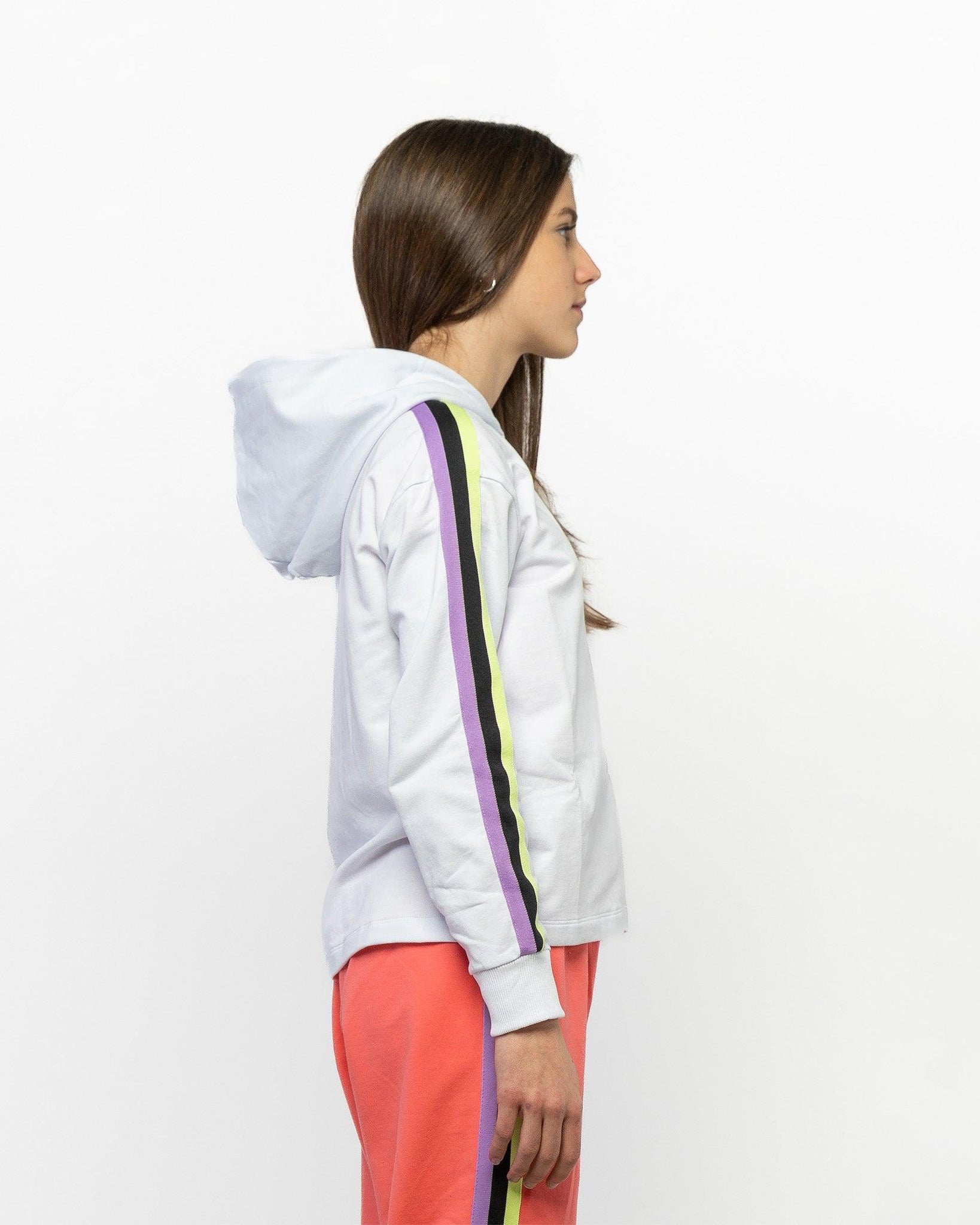 Felpa Cappuccio Zip + Tape Vestibilità Regular. Composizione: 95%Cotton+5%Elastane.