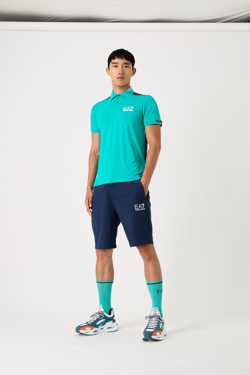 Bermuda realizzati nell'innovativo tessuto tecnico VENTUS7, dotati di due comode tasche laterali e personalizzazione con logo EA7 a contrasto.