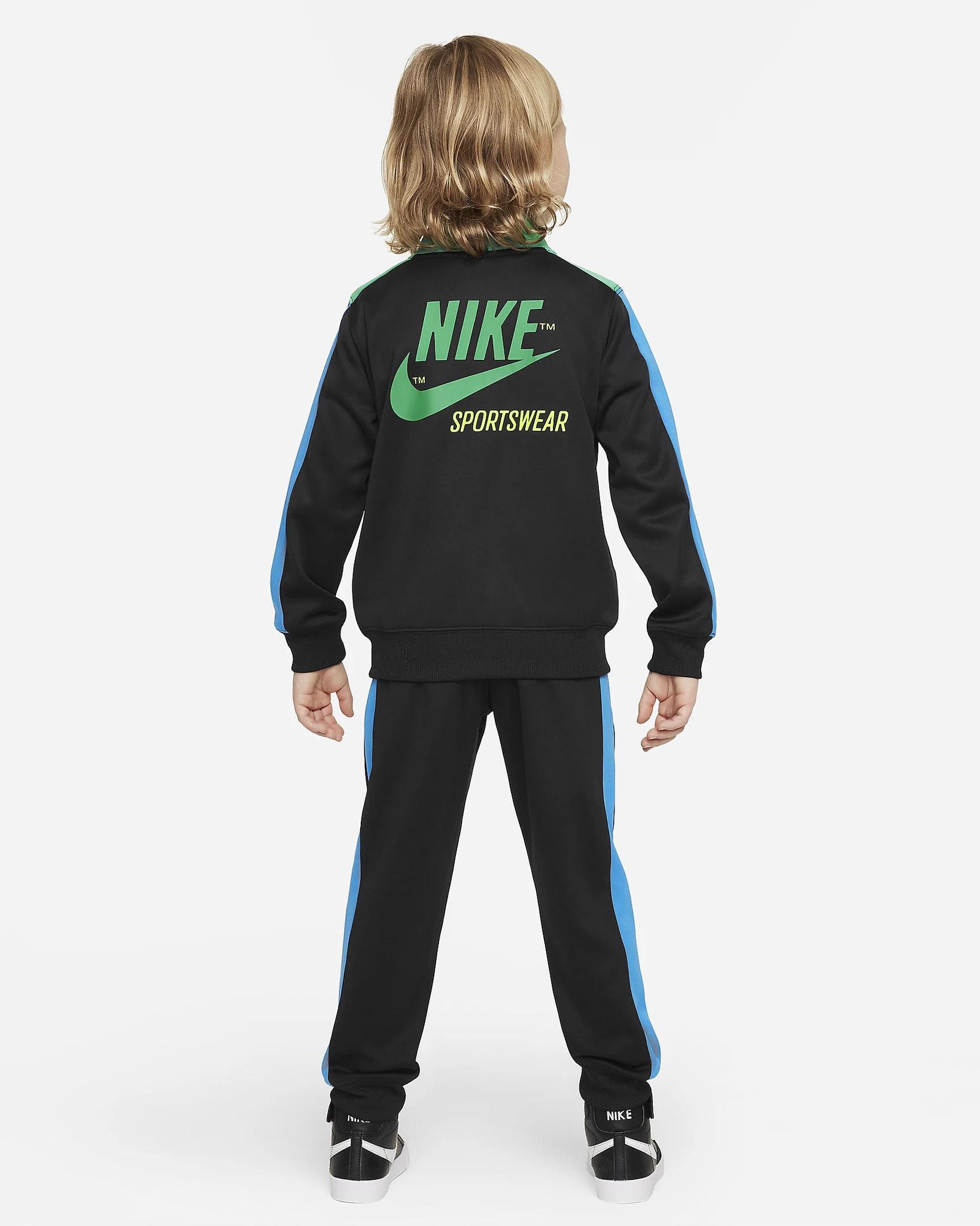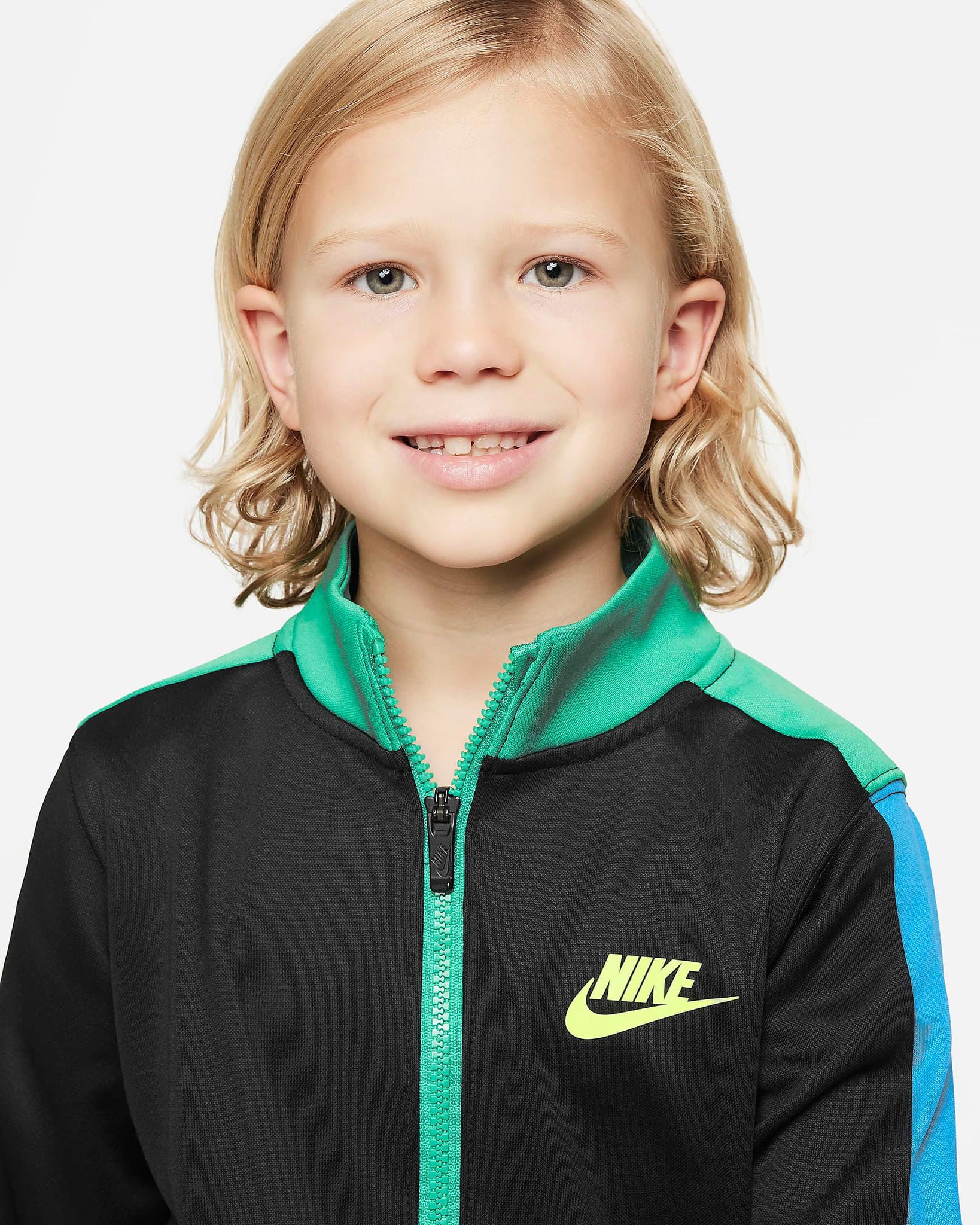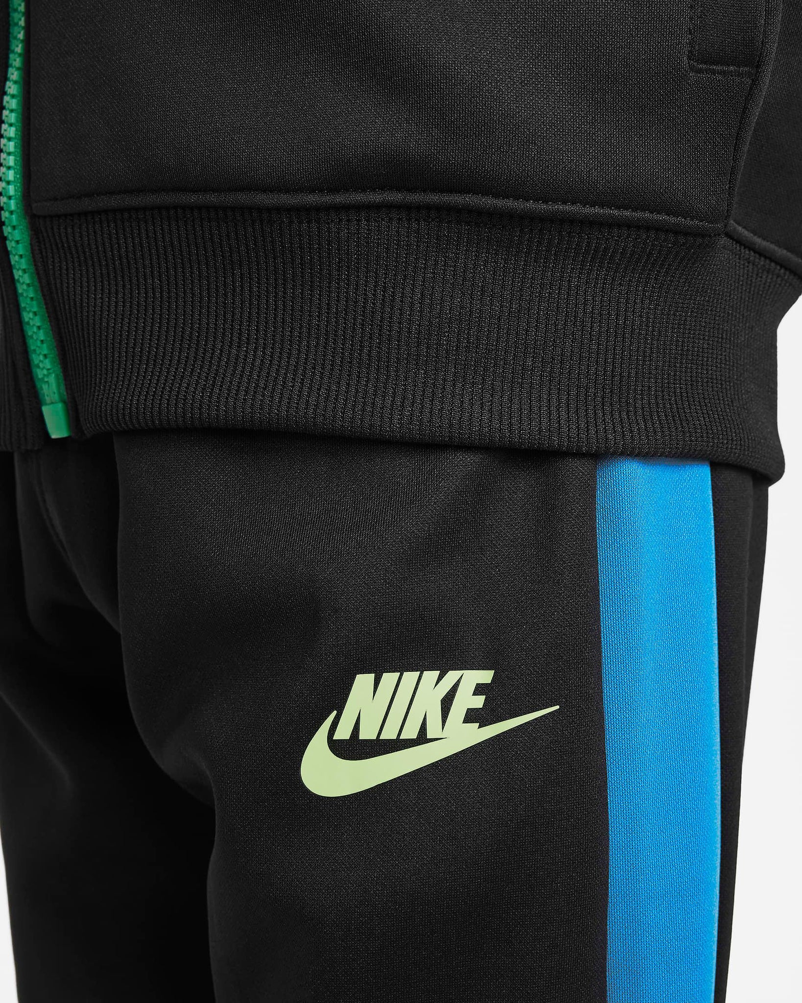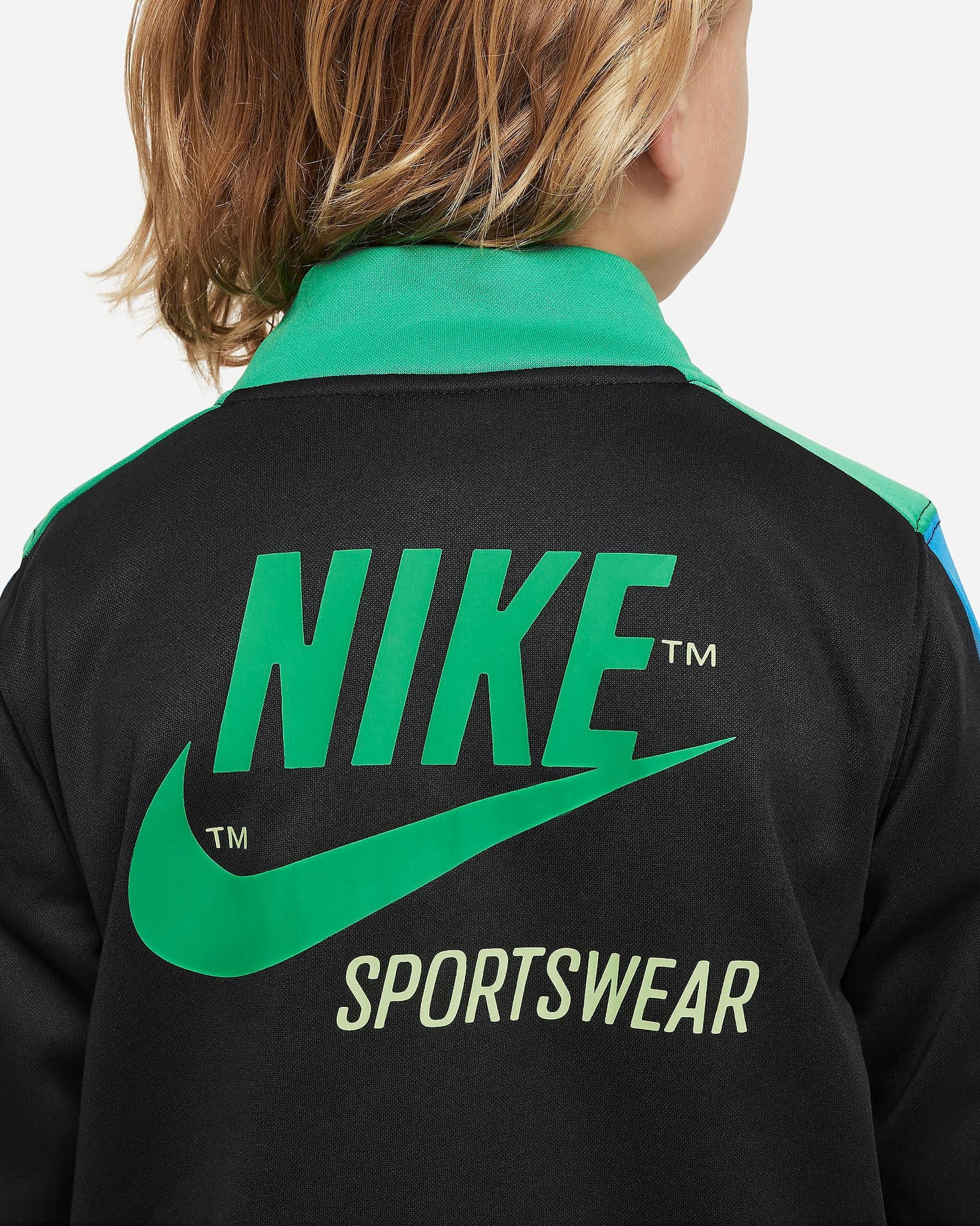 Realizzato in tessuto piqué con morbido retro spazzolato, questo set da 2 pezzi si ispira alla classica tuta da riscaldamento. La chiusura con zip intera sulla giacca facilita la stratificazione e la regolazione della temperatura, il colletto in piedi aggiunge ulteriore intimità e i pantaloni affusolati abbinati hanno polsini a coste e una comoda cintura elasticizzata. Inoltre, questa tuta ha un piccolo extra: sia la giacca che i pantaloni sono dotati della tecnologia Dri-FIT ad asciugatura rapida e traspirante per aiutare i più piccoli a rimanere freschi e asciutti mentre giocano. Abbinalo a qualsiasi canotta o maglietta Nike per un look completo. Benefici Entrambi i pezzi possono essere indossati con capi già presenti nel guardaroba del tuo bambino. Dettagli del prodotto 100% poliestere Lavatrice