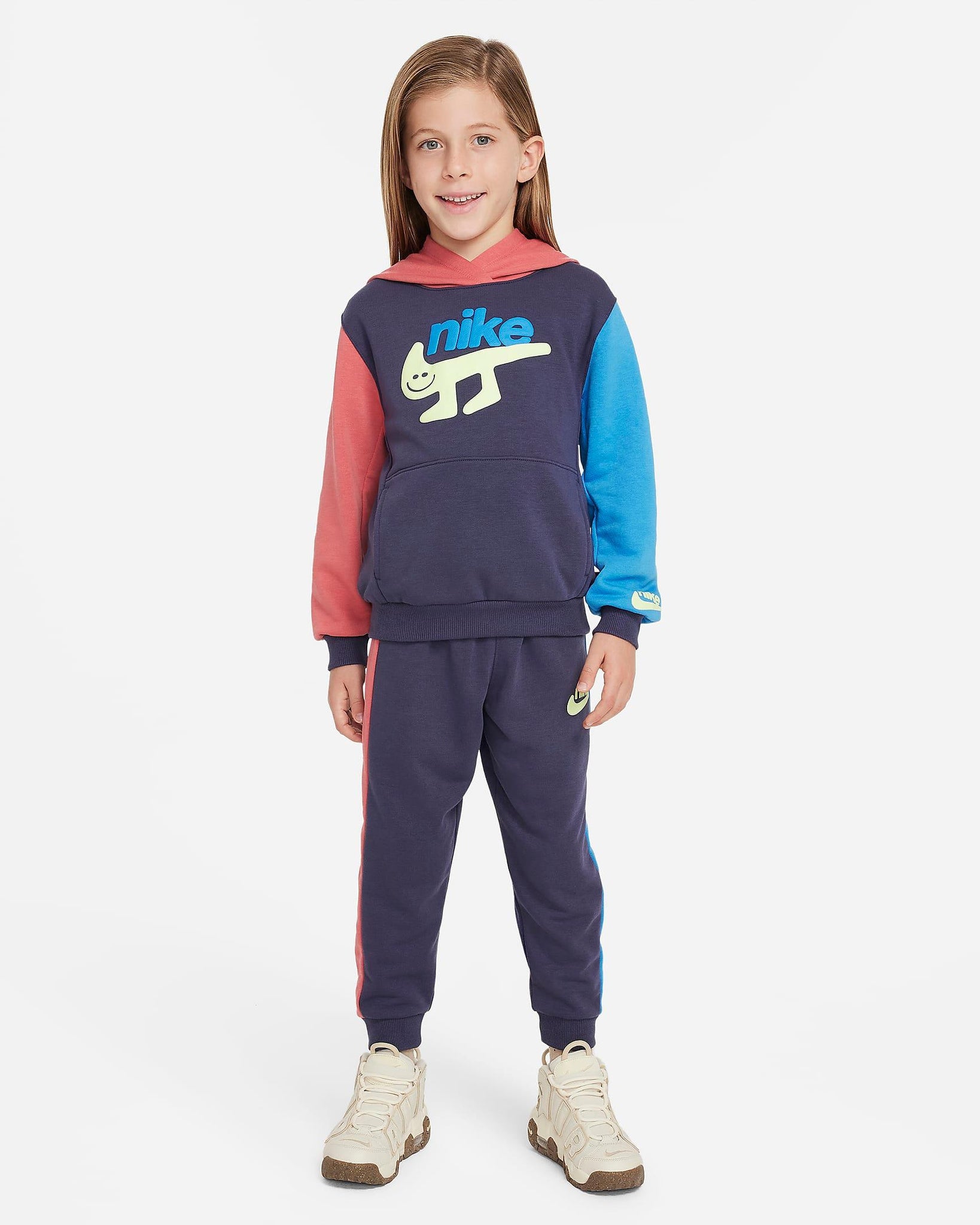 Questo completo French Terry a blocchi di colore è un modo semplice per vestire i piccoli atleti nell'accogliente stile Swoosh. La felpa con cappuccio ha un taglio ampio facile da sovrapporre e i pantaloni affusolati abbinati hanno una cintura elasticizzata e polsini a coste per una vestibilità comoda in cui i più piccoli possono muoversi liberamente. Benefici Entrambi i pezzi possono essere indossati con capi già presenti nel guardaroba del tuo bambino. La tasca a marsupio offre un posto dove riporre piccoli oggetti. Dettagli del prodotto 60% cotone, 40% poliestere Lavatrice Importato