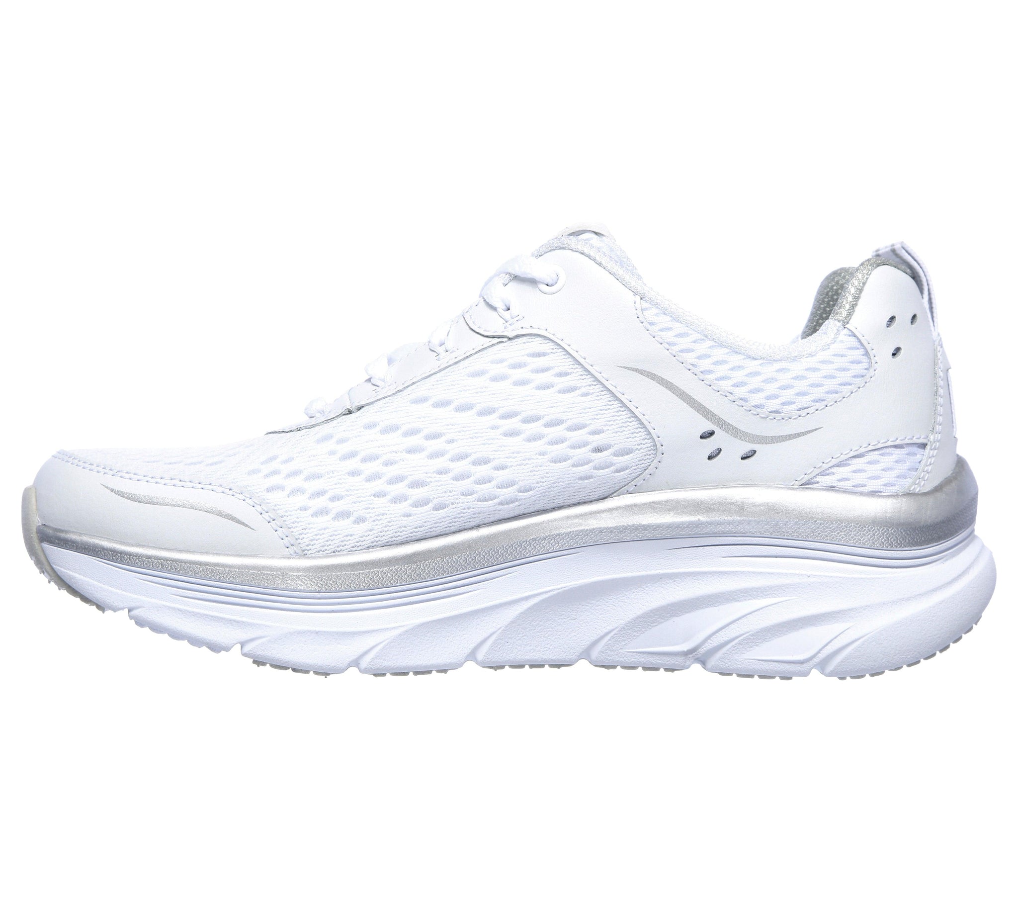 Scarpe sportive da donna di Skechers modello D'Lux Walker Infinite Motion, ideali per la palestra e/o il tempo libero. Una sneaker da passeggio estremamente confortevole per fare lunghe passeggiate senza rinunciare allo stile. Morbida tomaia in tessuto con rinforzi in materiale sintetico ove necessario. Tessuto in maglia sportiva Eleganti rinforzi in materiale sintetico sulla punta e sul tallone. Lacci elastici per un facile adattamento al piede. Collo e linguetta imbottiti. Relaxed Fit per una sensazione più spaziosa su punta e avampiede. Soletta interna ammortizzata in memory foam con raffreddamento ad aria. Intersuola ammortizzata con strato superiore a doppia densità e supporto Skech-Foam. Suola in gomma flessibile.