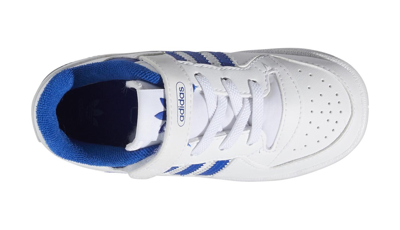 MODELLO DI ISPIRAZIONE SPORTIVA DEDICATO AI PIÙ PICCOLI. Questa versione infant delle adidas Forum Low è perfetta per far appassionare i più piccoli al basket e, al tempo stesso, al mondo delle sneaker. L'iconico design a X, la suola robusta e la raffinata tomaia con chiusura a strappo sulla caviglia richiamano il modello originale.