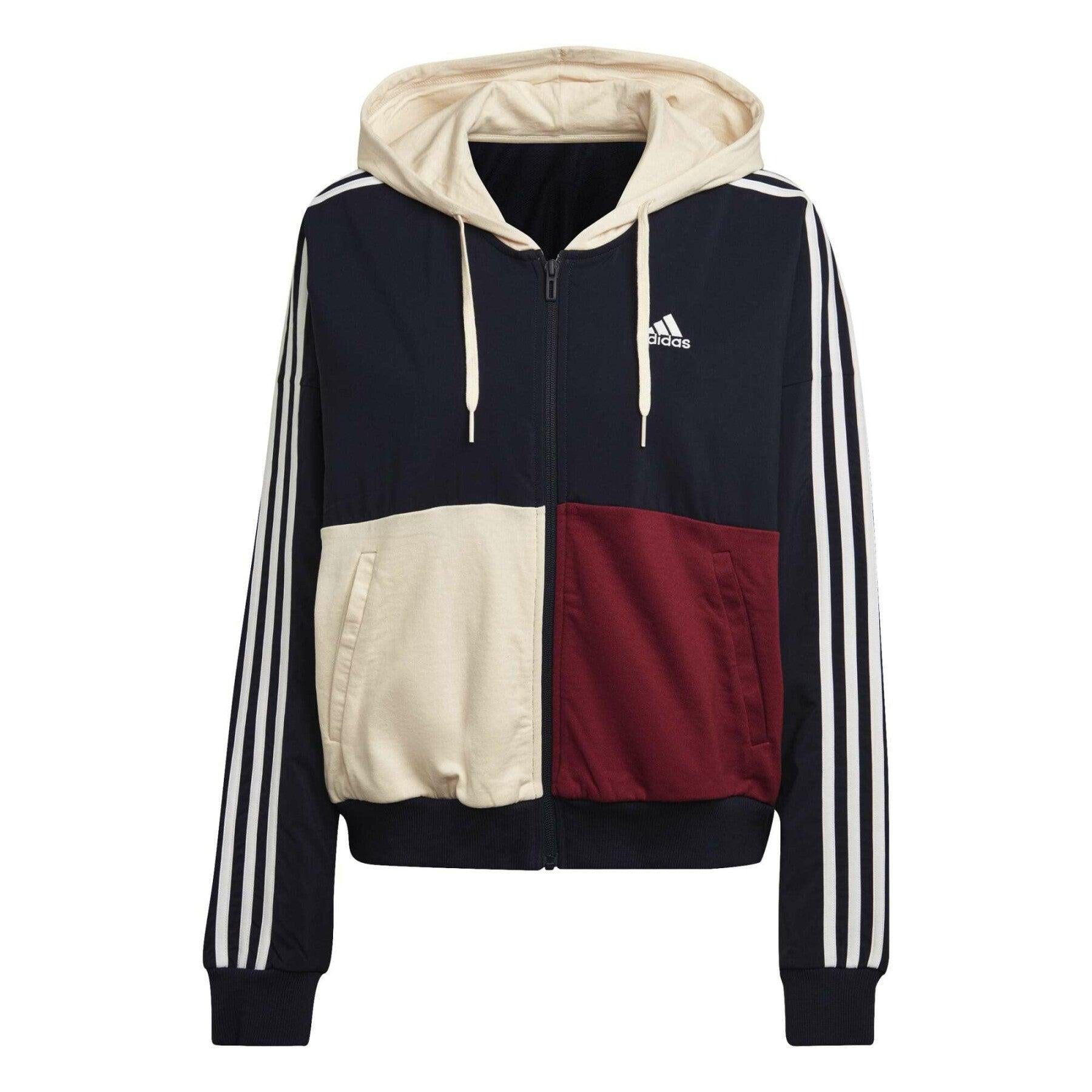 ADIDAS Felpa con zip blu da donna con blocchi di colore.