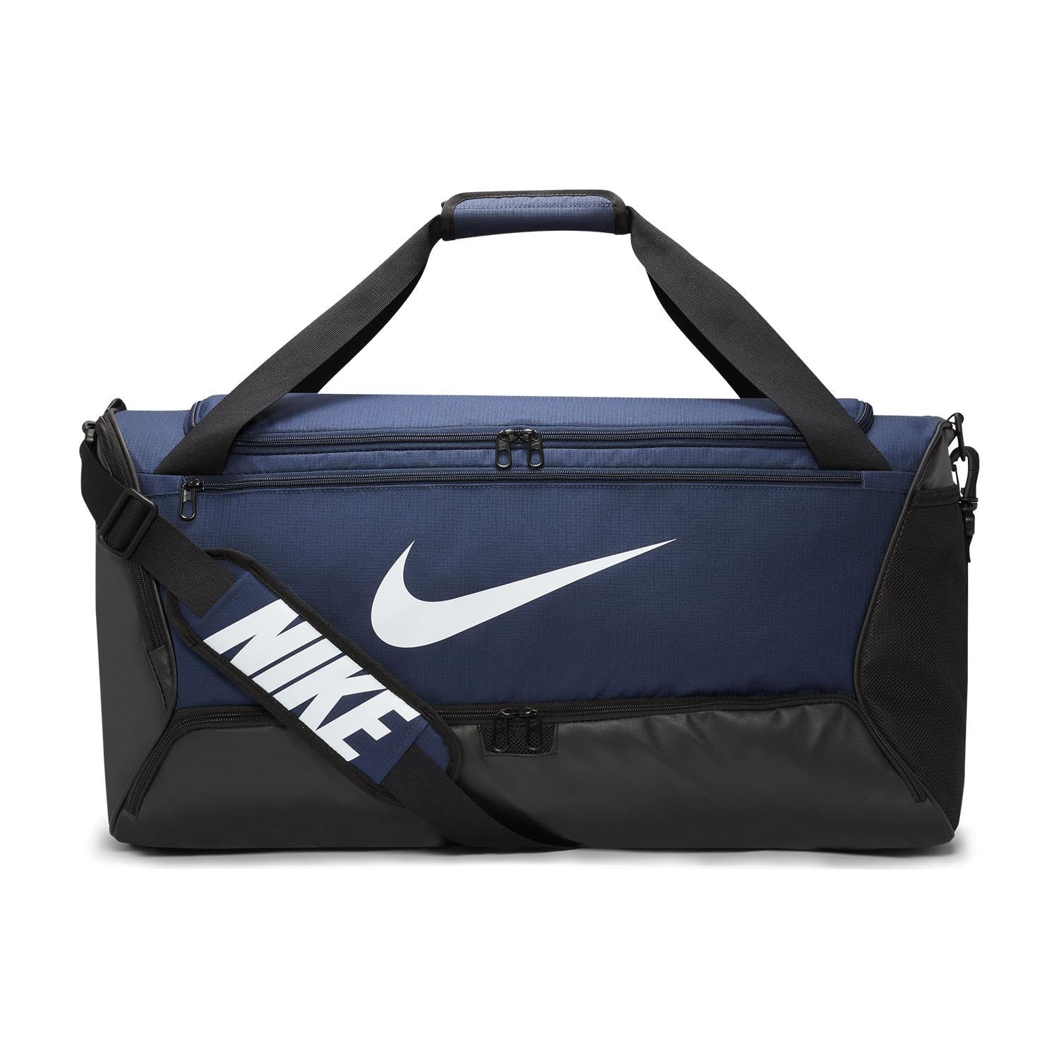 Il borsone Nike Brasilia, spazioso e resistente, tiene a portata di mano tutta la tua attrezzatura da allenamento.