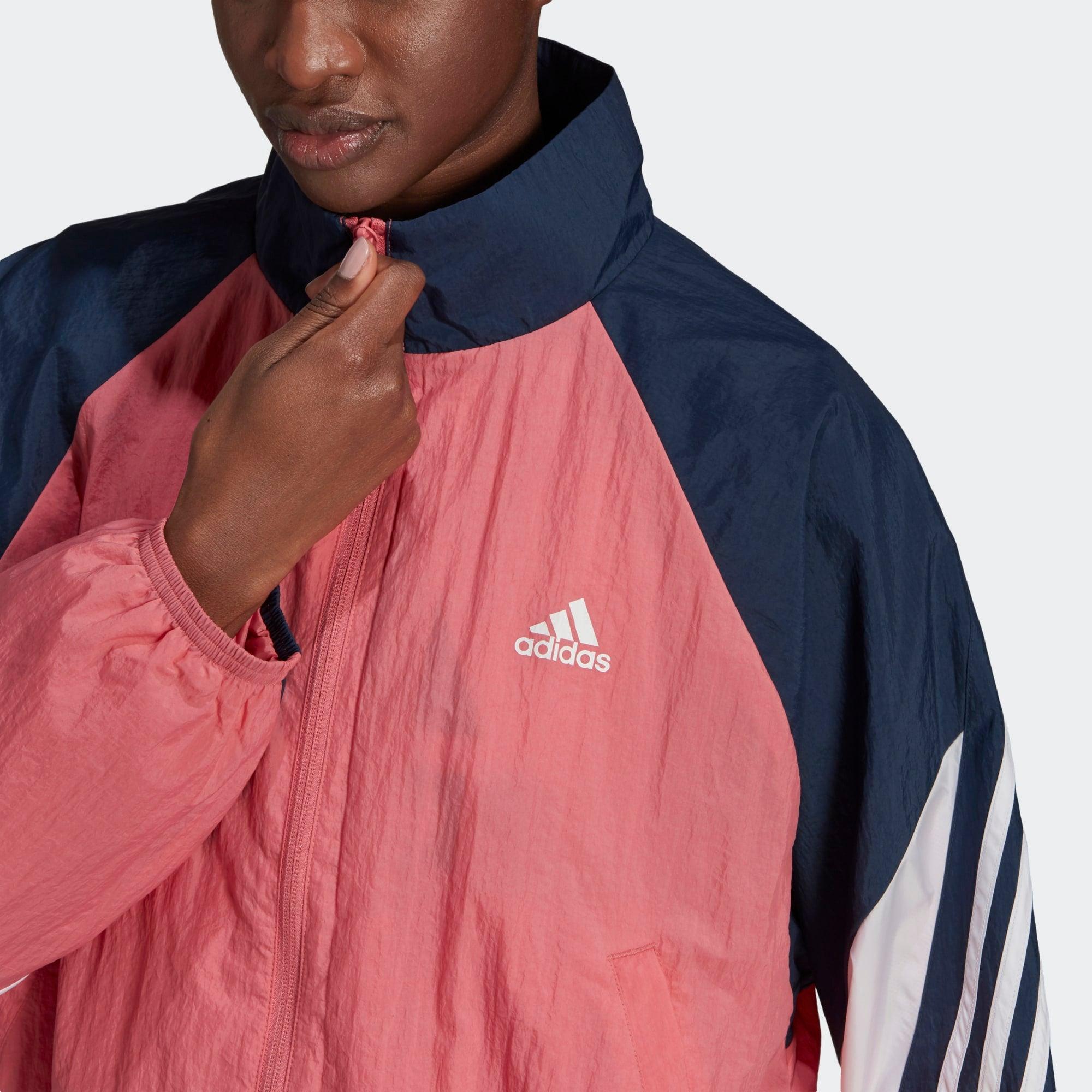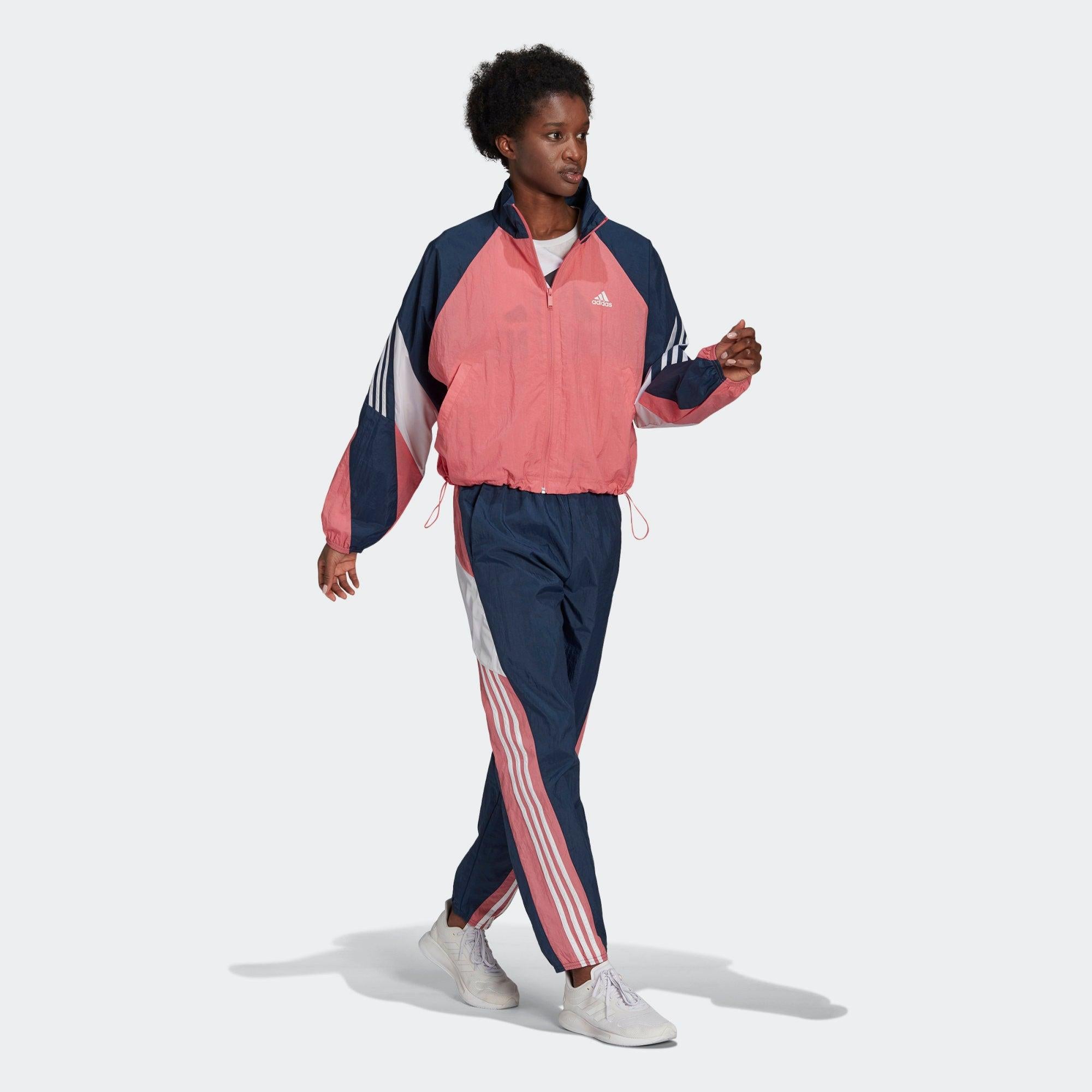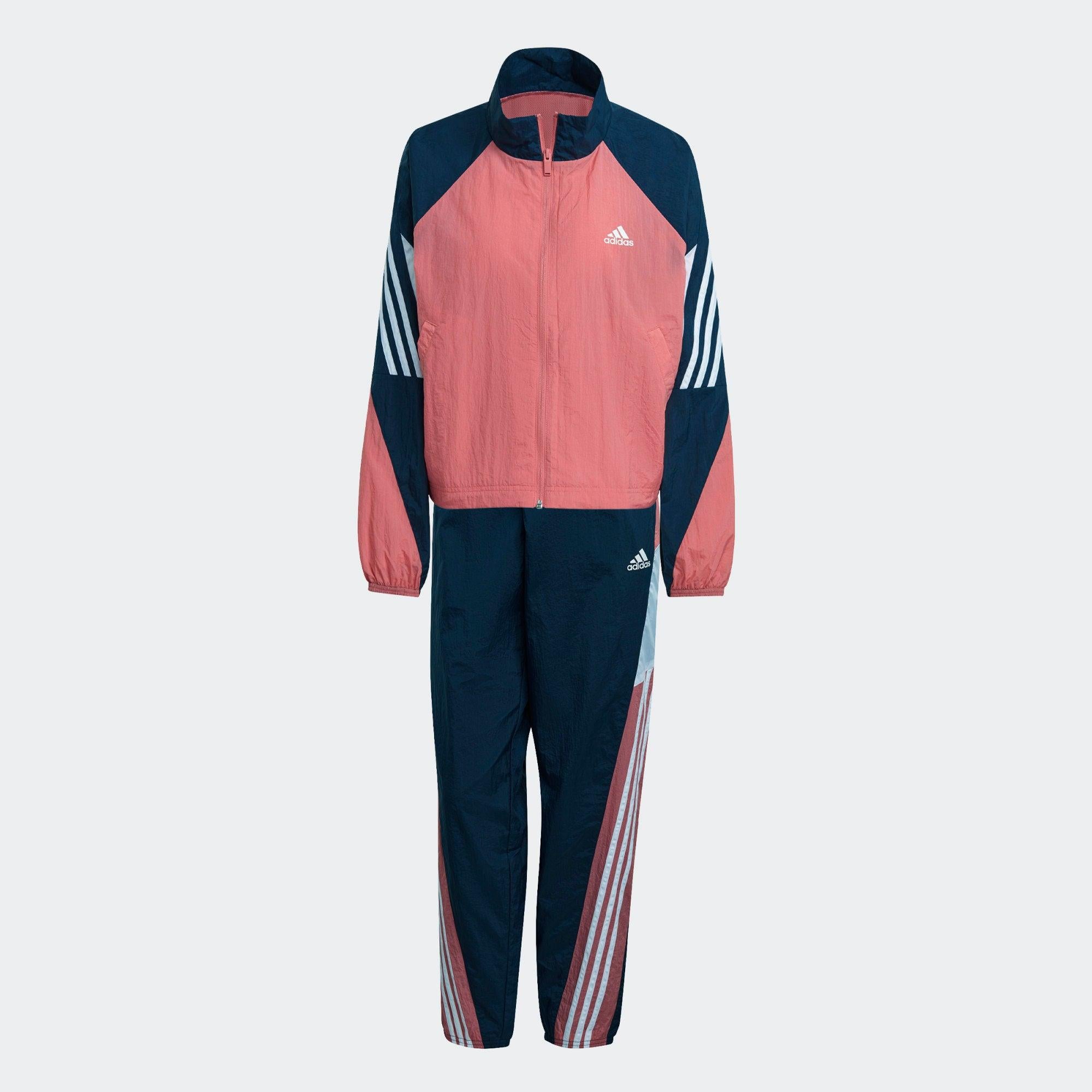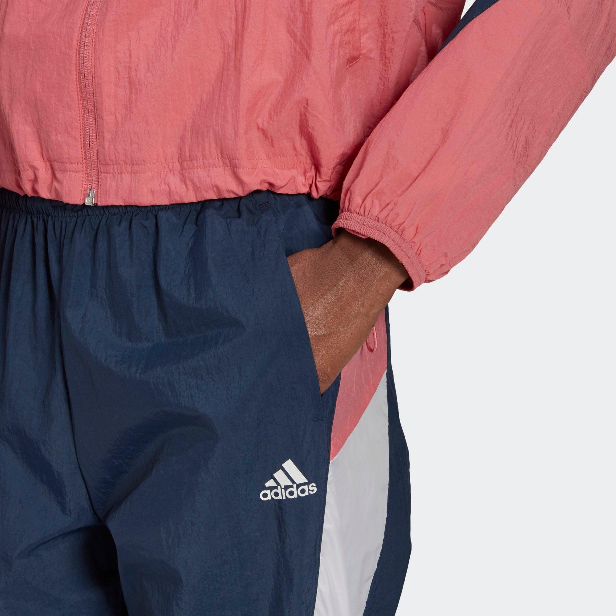 TUTA ADIDAS SPORTSWEAR GAME-TIME WOVEN GIACCA AMPIA E PANTALONI IN COORDINATO CON TAGLIO REGOLARE. Questa tuta risponde alle tue esigenze di comfort e praticità. La vestibilità è interamente personalizzabile grazie al cordino elasticizzato sulla giacca ampia e sul girovita dei pantaloni dal taglio regolare. Il design in coordinato ti assicura uno stile al top in palestra, in viaggio o sul divano. Benvenuta nella squadra. Il capo è realizzato con materiale riciclato come prova tangibile del nostro impegno nella lotta all'inquinamento causato dalla plastica. SPECIFICHE Felpa dal taglio ampio e pantaloni dal taglio regolare Giacca: zip integrale e collo alto Tela, 100% nylon Giacca: tasche laterali Giacca: orlo regolabile con cordino elasticizzato Pantaloni: tasche laterali Pantaloni: girovita regolabile con cordino Pantaloni: orli elasticizzati Colore prodotto: Hazy Rose / Crew Navy / White Codice prodotto: GL9464