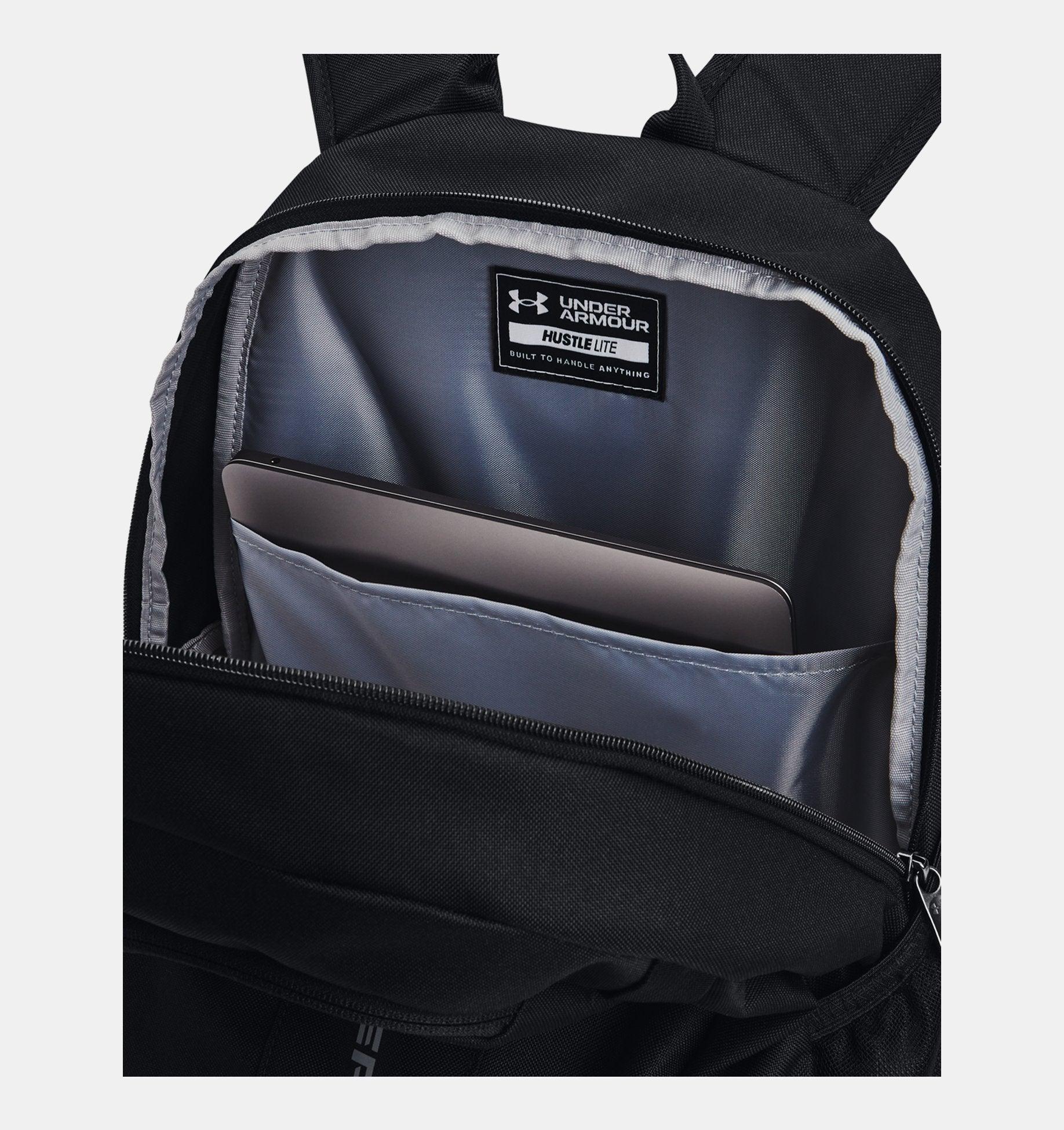 Leggero, robusto e impermeabile. Cos'altro ti serve? La tecnologia UA Storm offre una finitura altamente resistente all'acqua e alle macchie, in grado di contrastare gli elementi Il pannello posteriore imbottito e gli spallacci ergonomici lo rendono comodo da trasportare Scomparto con rivestimento morbido per MacBook Pro® fino a 15" o computer portatili di dimensioni simili Tasca anteriore con zip per oggetti di valore Tasca laterale per una bottiglia d'acqua Sistema Molle per ulteriori punti di fissaggio Pannello inferiore resistente rivestito in PU