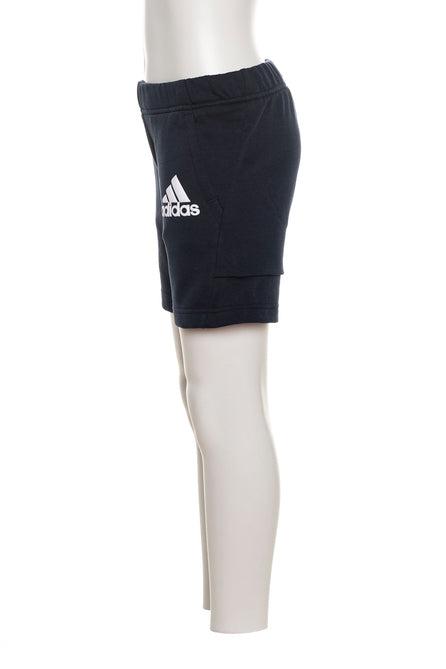 Bermuda Adidas Training da bambino garzato in cotone, con elastico e coulisse interna in vita e tasche oblique con logo a lato in stampa gommata rigonfiante a contrasto colore