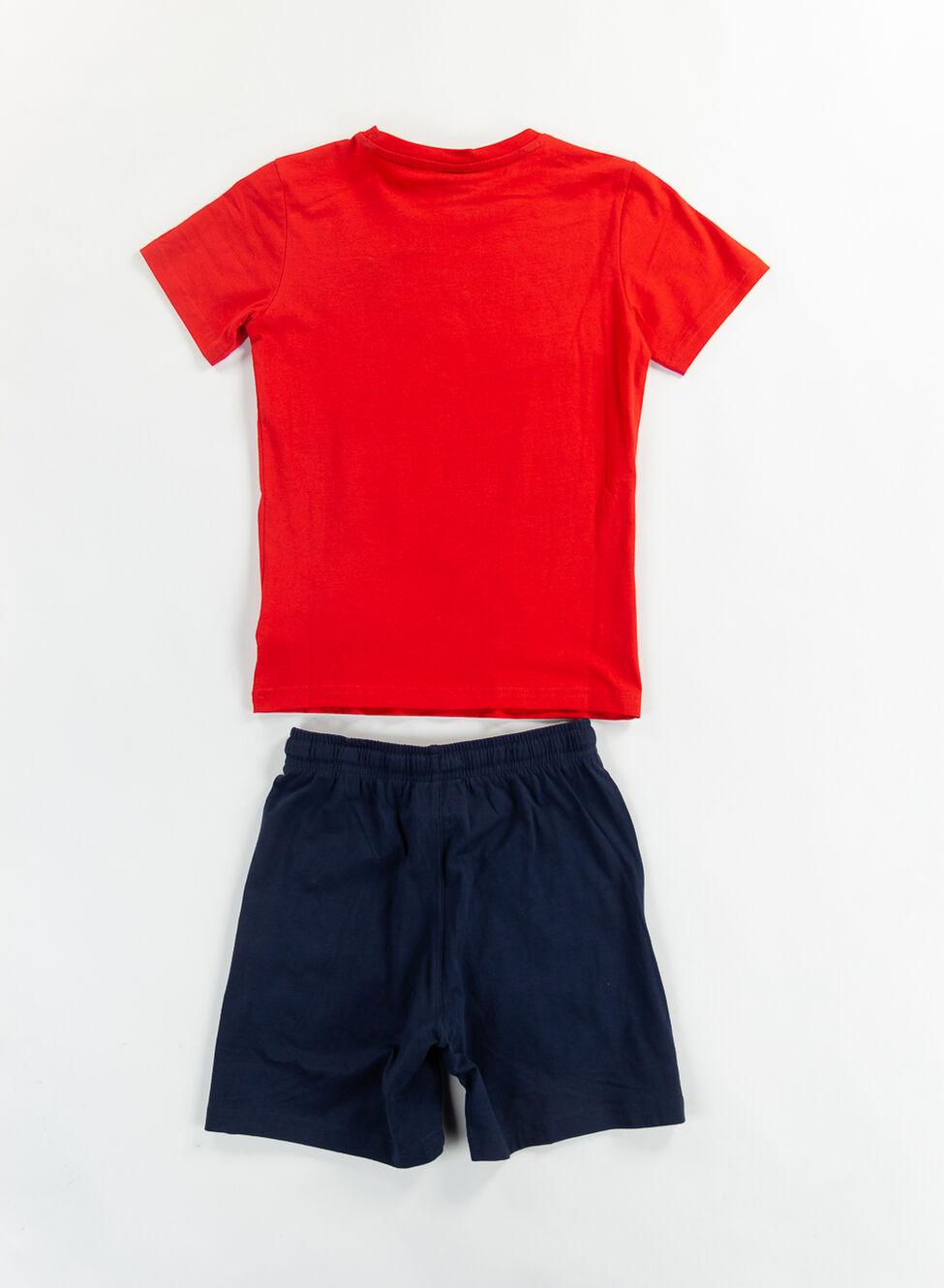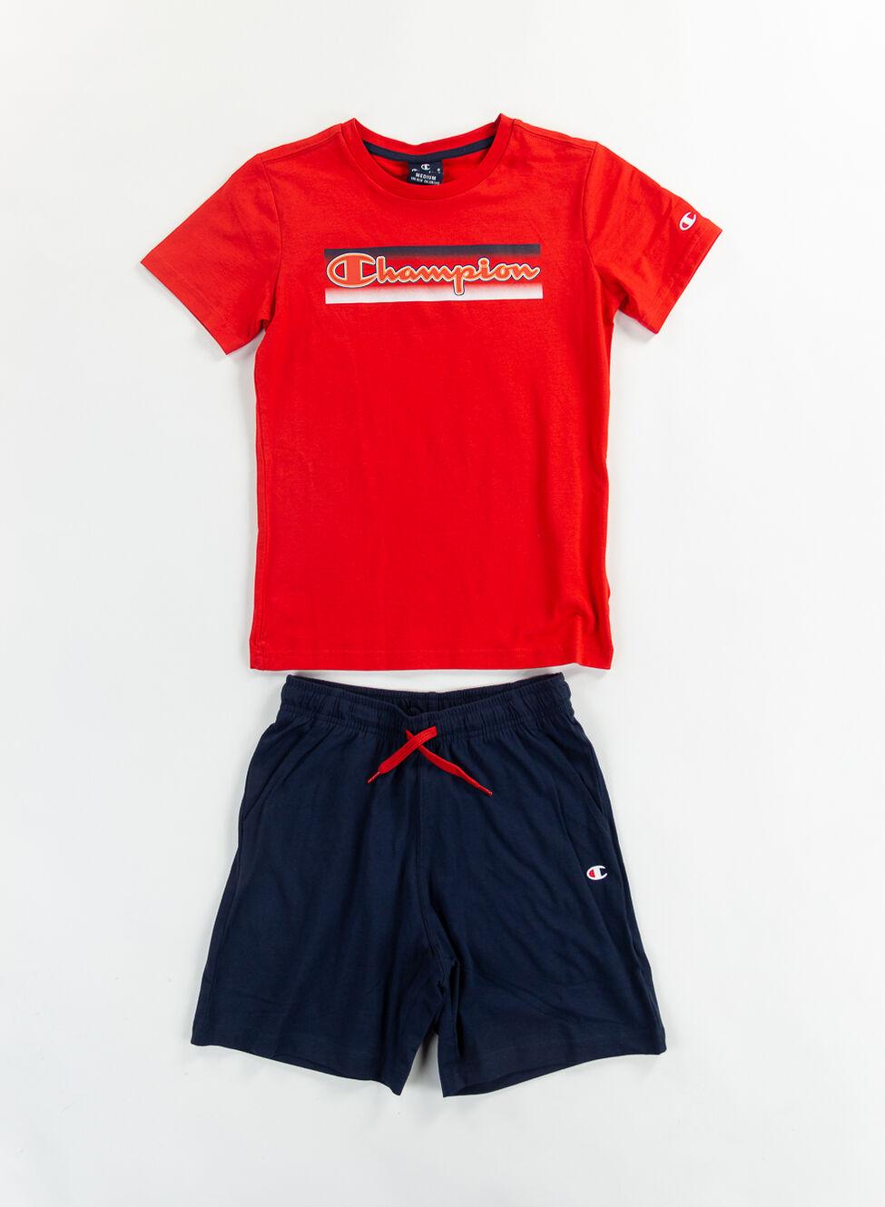 Completo estivo da ragazzo Champion composto da t-shirt girocollo e bermuda con girovita elasticizzato e coulisse esterno per un fit personalizzato.
