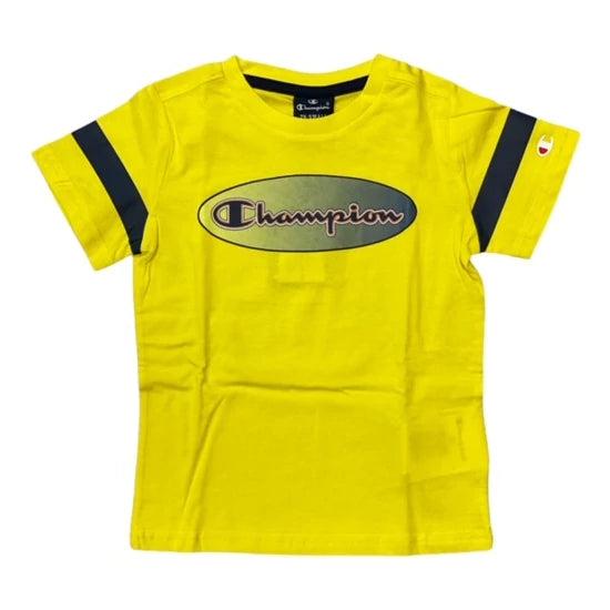 Completo estivo da ragazzo Champion composto da t-shirt girocollo e bermuda con girovita elasticizzato e coulisse esterno per un fit personalizzato.