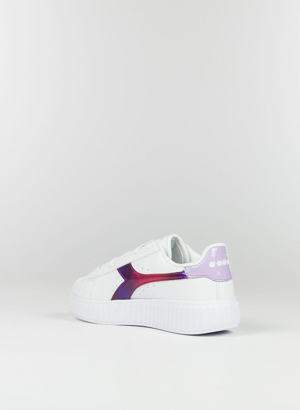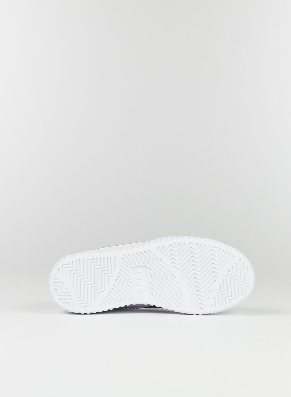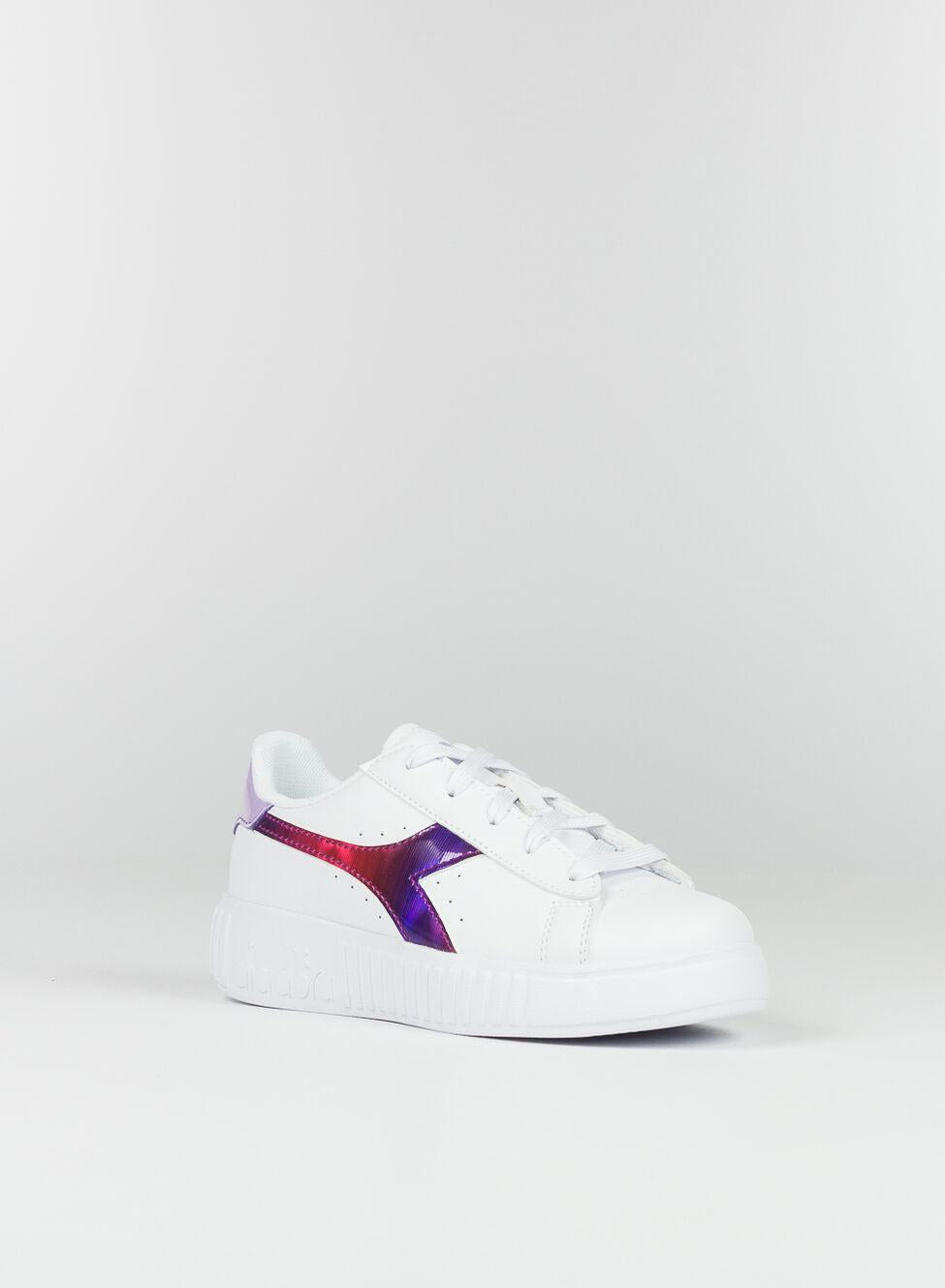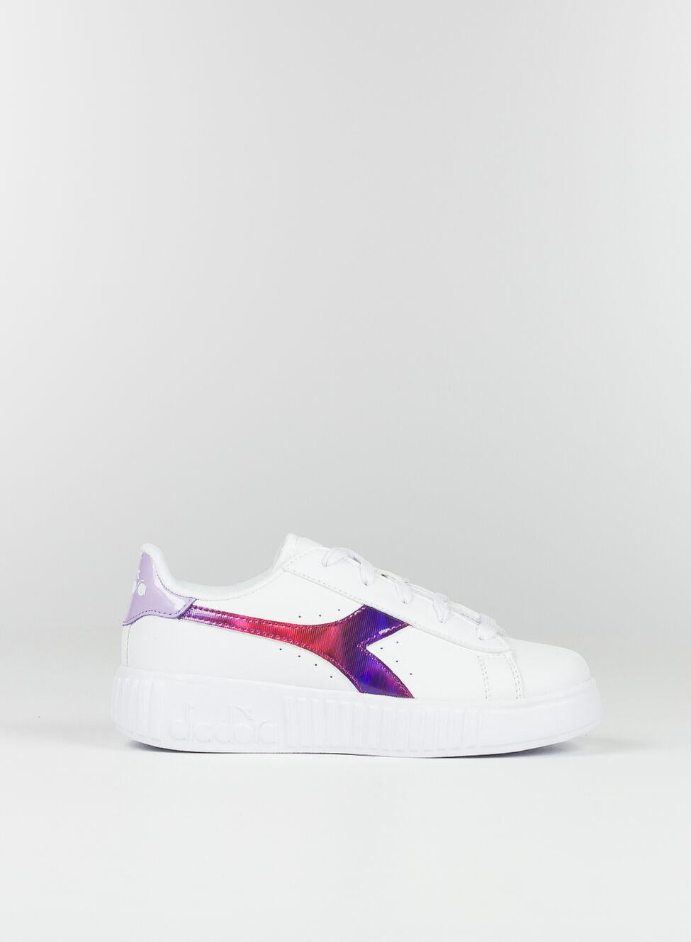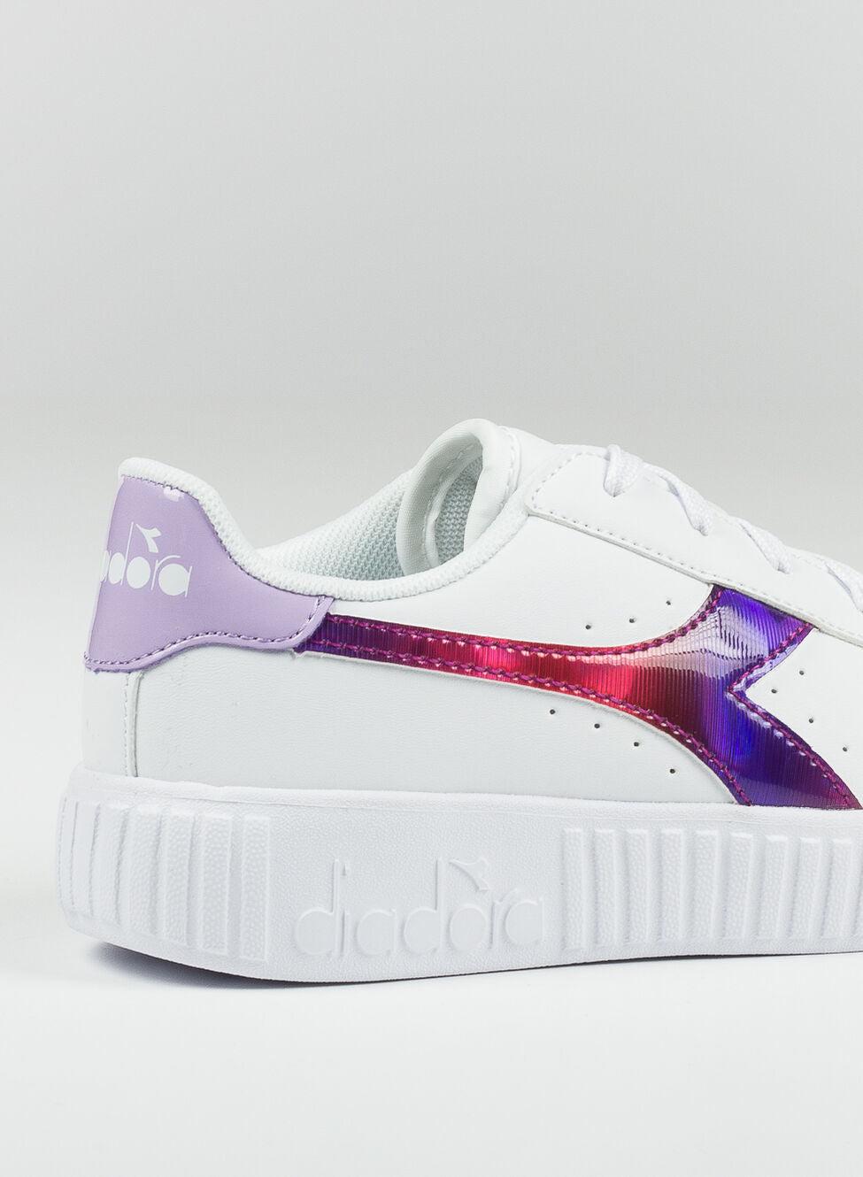Sneakers da bambina con logo metallizzato laterale. Tomaia in pelle sintetica. Suola in gomma TPR. Chisuura con lacci.